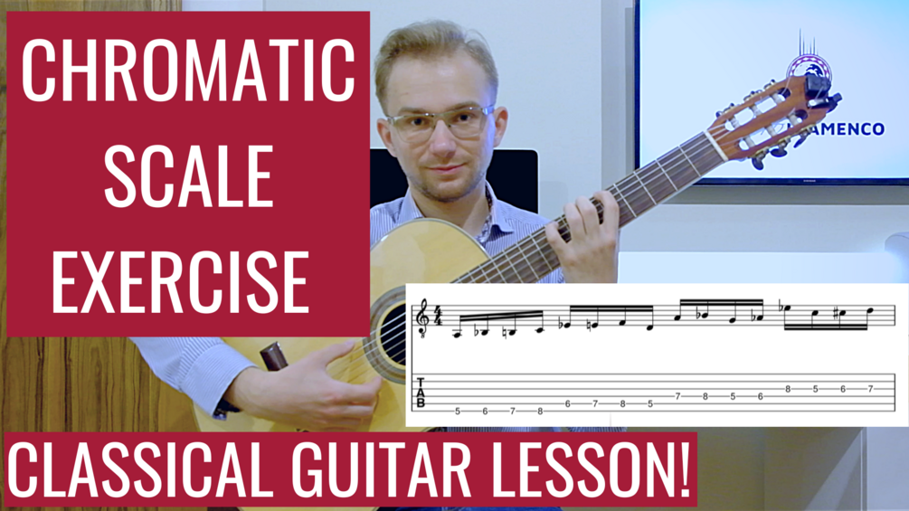 PDF with tabs and sheet music prepared for my YouTube Flamenco Guitar Lesson "Chromatic scale guitar lesson - Daily warm up routine for Classical Guitar (Chromatic exercise)"